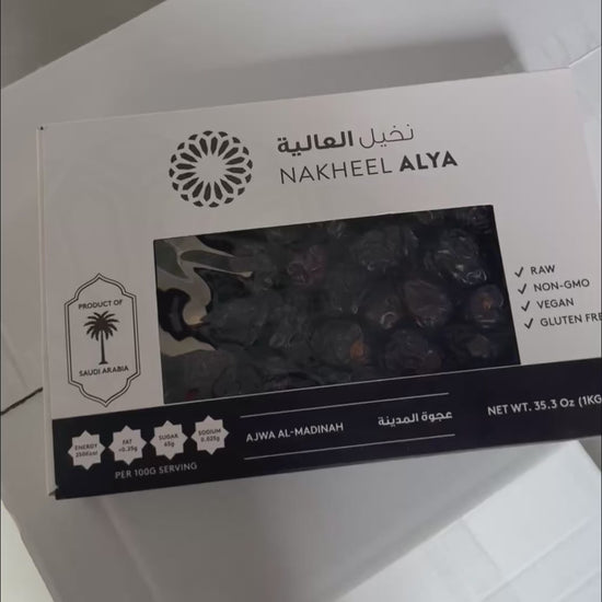Our Ajwa dates come straight from Medina, Saudi Arabia – rare, authentic and full of spiritual value. A date with history, loved since the time of the Prophet ﷺ.